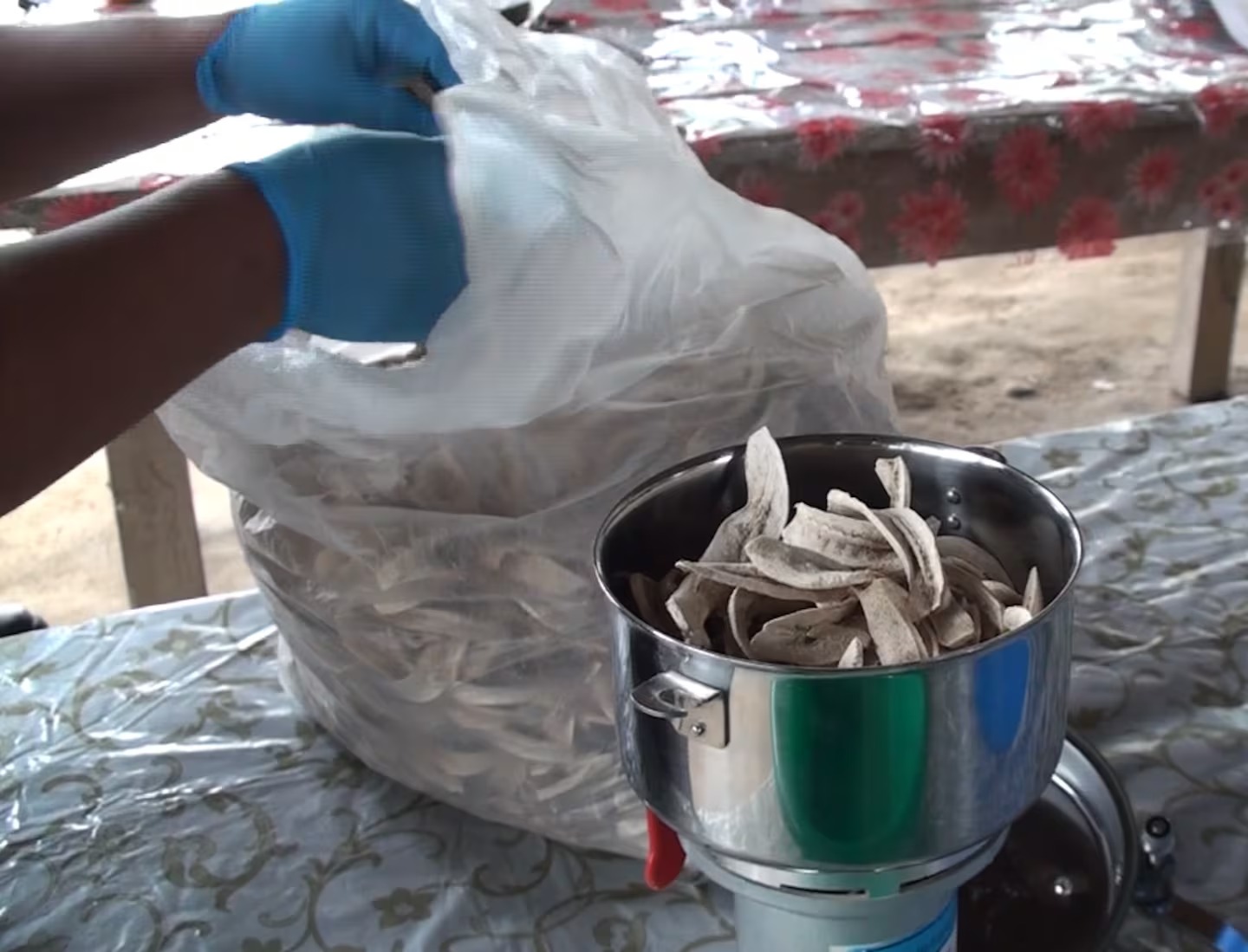 Luego explicó el paso a paso del proceso: “se hace con la fruta verde. Se la procesa. Se la filetea. Se la pone a secar en un deshidratador y luego la molemos. Ahí obtenemos un material fino (harina) y otro grueso que lo usamos como rebozador”.