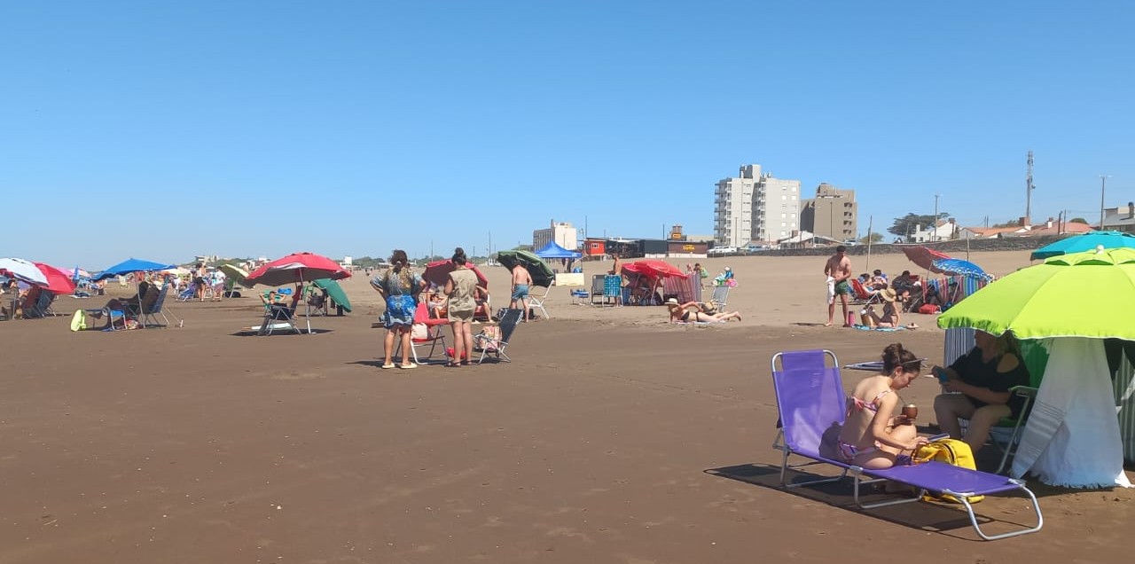 Este miércoles, con cielo despejado y un mar que invita, la playa de Claromecó convoca a turistas y residentes.
